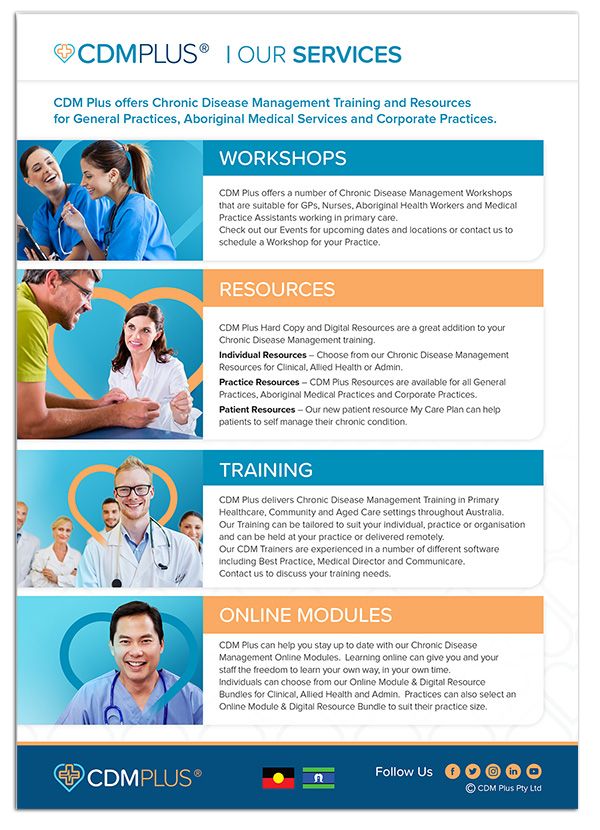 Our Targeted Chronic Disease Management Training is delivered on-site or remotely and is available throughout Australia. Available for all General Practices, Aboriginal Medical Services and Corporate Practices.